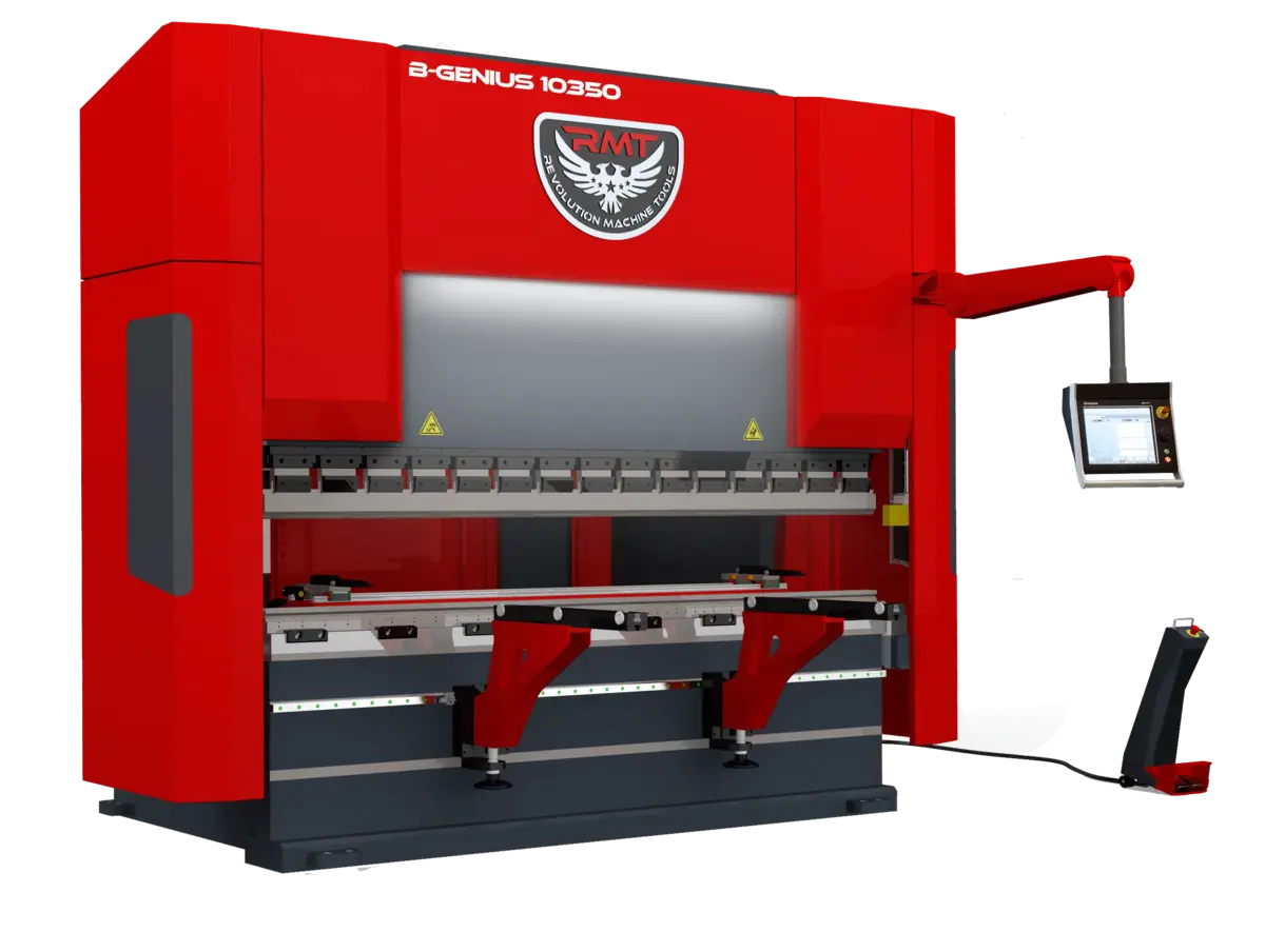RMT B-GENIUS 12' x 150 Ton precision 7 axis CNC (Y1,Y2,X,R,Z1,Z2, with CNC Crowning ) hydraulic press brake - Engineered in the USA
